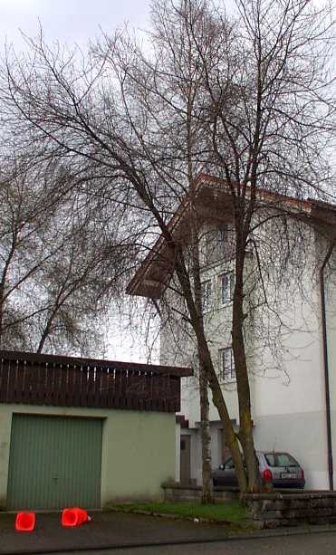 Sämtliche Arbeiten wurden hier ohne Kran oder Hebebühne erledigt, was die Kosten senkt und den Einsatzbereich erweitert, da hierbei auch Bäume in Hinterhöfen gefällt werden können, die für schweres Gerät nicht zugänglich sind. Details zur Fällung solcher Baume: Seil- und Klettertechnik Es besteht natürlich ausreichender Versicherungsschutz falls trotz aller Sicherheitsvorkehrungen etwas passieren sollte. | |||||||||||||||||||||||||||||||||||||||||||||||||||||||||||||||||||||||||||